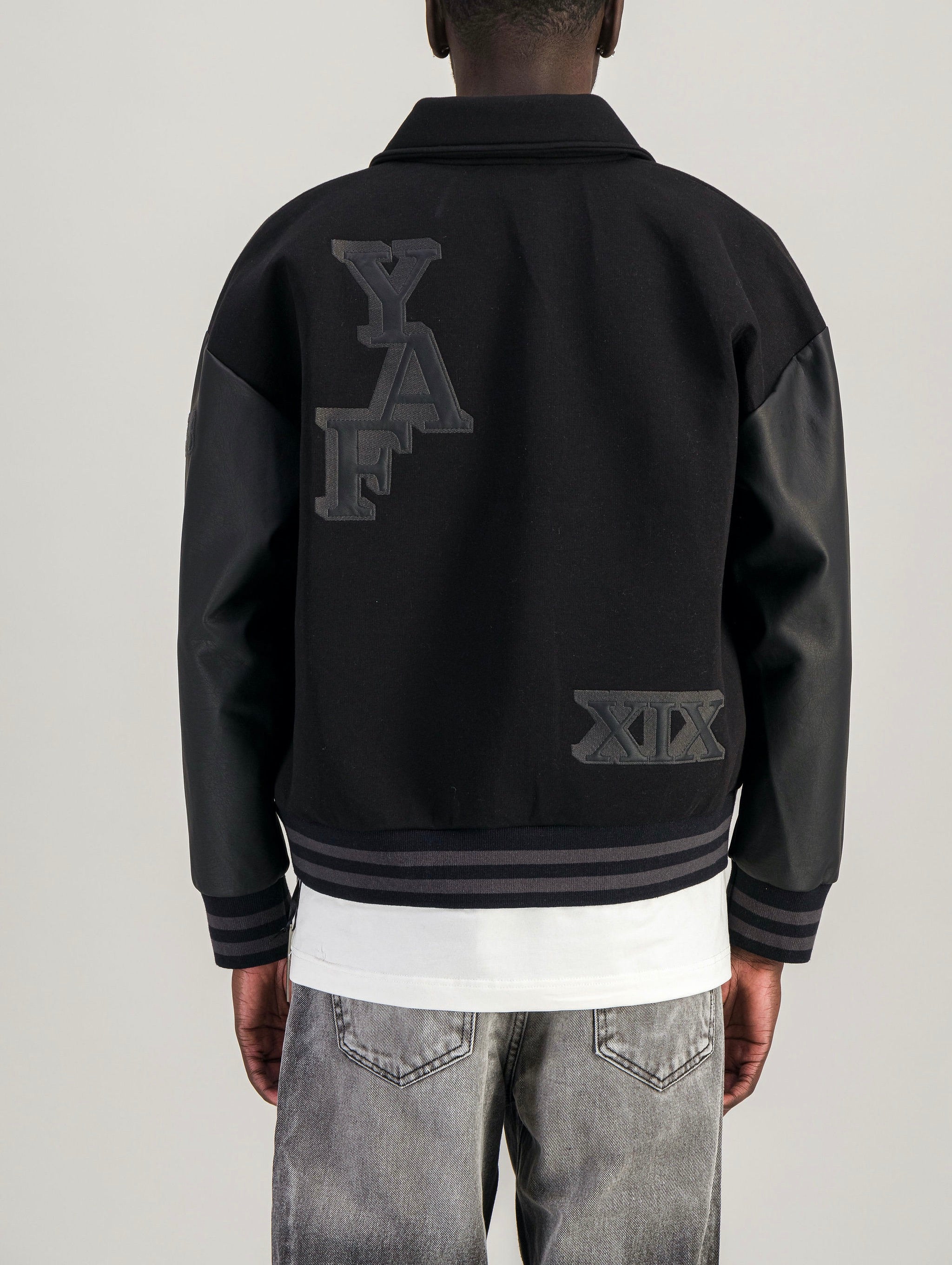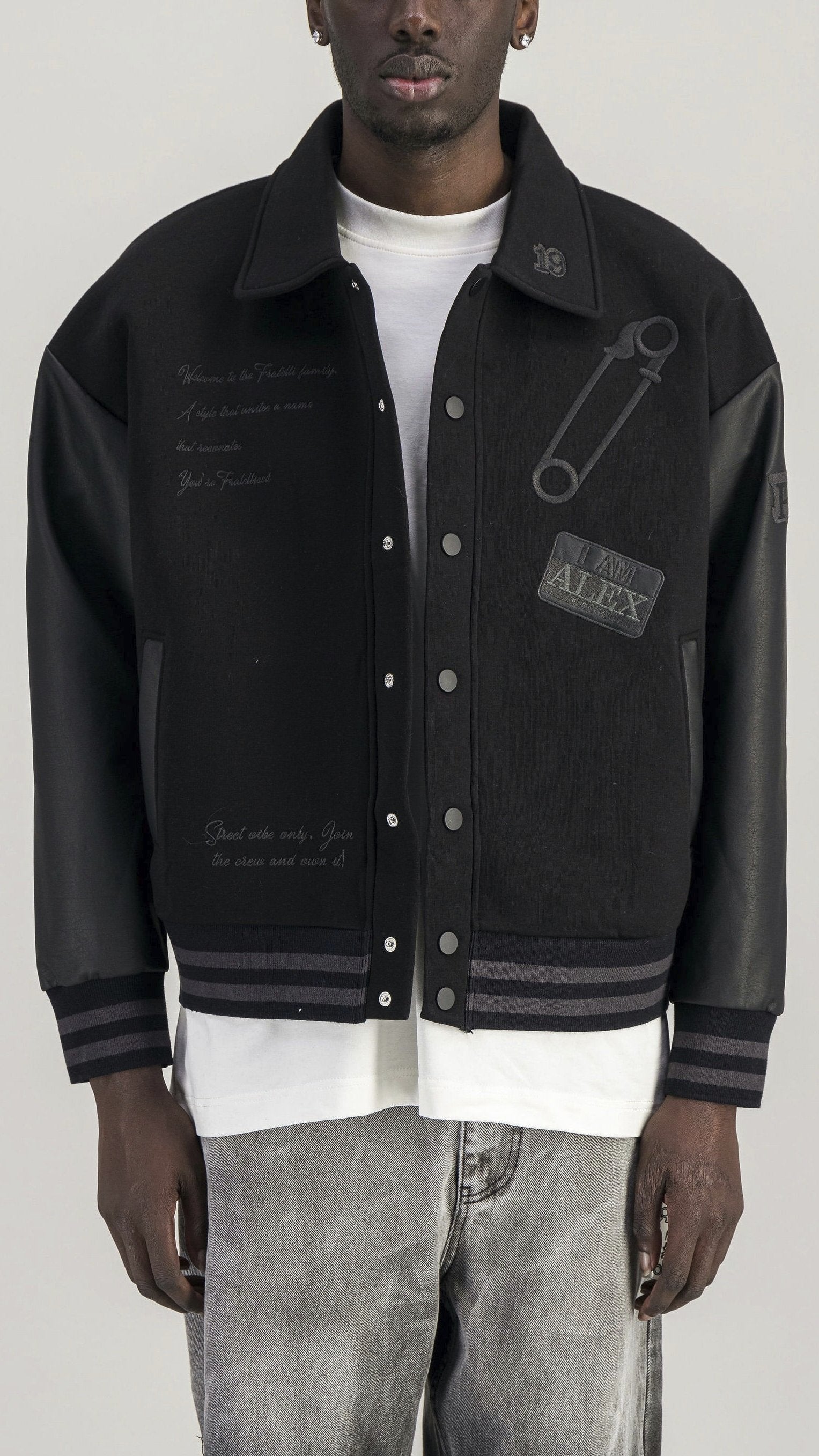 Cette veste arbore des patchs cousus sur le col, l’avant et le dos. L’épingle iconique brodée sur la face gauche. L’inscription "I AM ALEX" associé de phrases fortes comme "Welcome to the Fratelli Family" et "Street Vibes Only" ornent l’avant droit. Au dos, les mentions YAF et XIX renforcent son identité unique et affirmée.